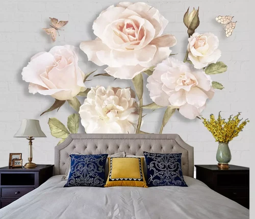 Mural Papel Pintado 3D Flor Blanca Mariposa B5090 Extraíble Autoadhesivo Amy
