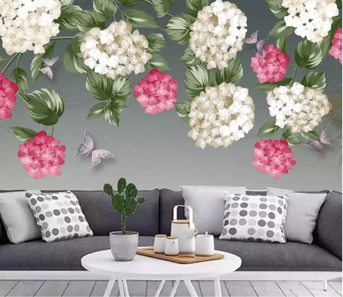 Mural Papel Pintado 3D Hortensia Mariposa B5089 Extraíble Autoadhesivo Amy