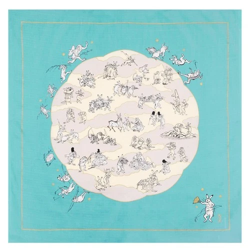 Musubi Furoshiki 39 pulgadas Turquesa Animales Caricatura Algodón Orgánico Japón