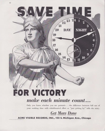 Anuncio impreso Acme Visible Records 1943 ahorra tiempo victoria estatua de la libertad mangas