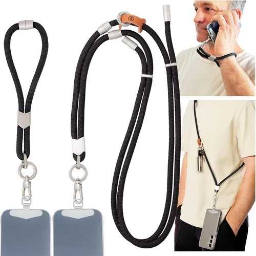 Correa y cordón para teléfono celular 2 en 1 - ajustable negro antirrobo de seguridad