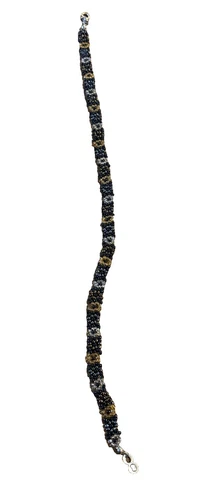 Collar Gargantilla Floral Vintage Cuentas Negro Dorado y Transparente, 12"