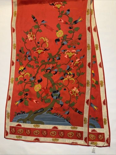 De colección BUFANDA DEL MUSEO METROPOLITANO DE ARTE 100% SEDA DINASTÍA QING En Rojo Japón