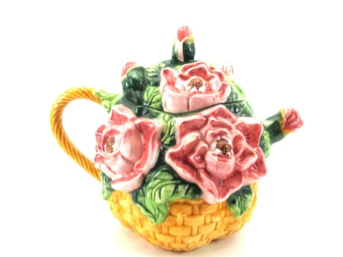 TETERA ROSA FIGURATIVA TAPA MIMBRE COMO CESTA CON FLORES Asia Master Group