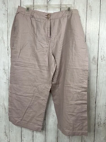 Pantalones recortados Avenue Capri 16 rosa mezcla de lino cintura elástica parcial nuevos sin etiquetas