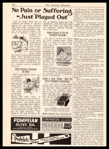 Extracto de Pabst Milwaukee 1916 bebida tónica para el dolor sin alcohol anuncio impreso vintage