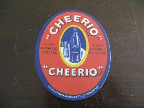 Etiqueta de papel para botella de bebidas no alcohólicas Cheerio a, Duckworth & Co. Manchester