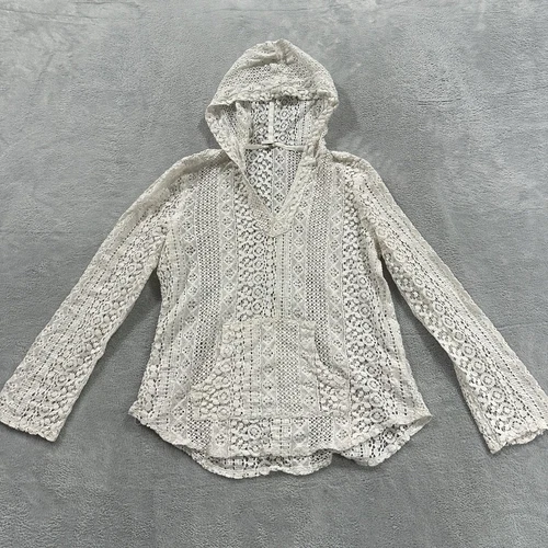 Empyre Top Con Capucha Encaje Mujer Mediano Blanco De Colección Y2K Playa Coqueta