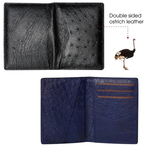 Cartera plegable de cuero de avestruz azul negro real cartera para hombre...
