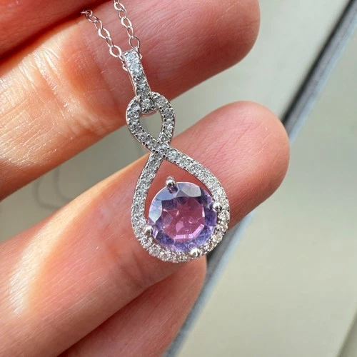 Collar de plata de ley 925 cadena púrpura circón piedras preciosas amatista natural de 6 mm