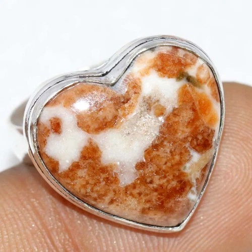 Anillo enchapado en plata 925 corazón granate natural en piedra caliza EE. UU. 8 regalo para esposa GW