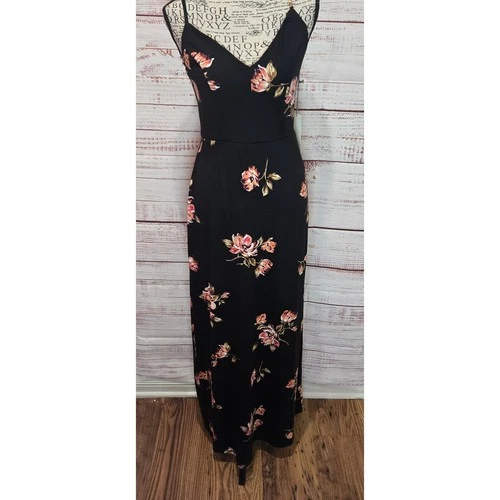 Maxi Vestido Para Mujer Nine Britton Floral Negro Rosa Tirantes Cuello en V NUEVO Talla Pequeña