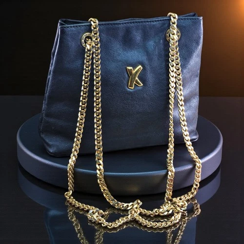 Bolso Bandolera De Colección Paloma Picasso Años 80 Cuero Negro Firma Cadena Dorada Italia