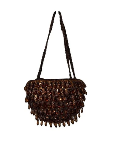Cartera marrón vintage con cuentas