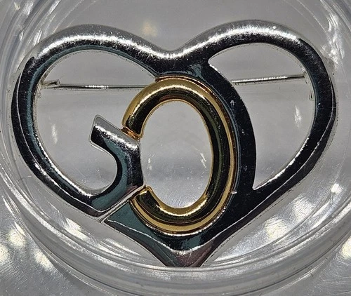 Broche prendedor St. John SJ dos tonos corazón DIOS tono dorado/plateado 1,5" vintage