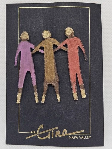 Broche de metal pintado a mano Gina Designs Napa Valley Pin “Fine Friends” 2"