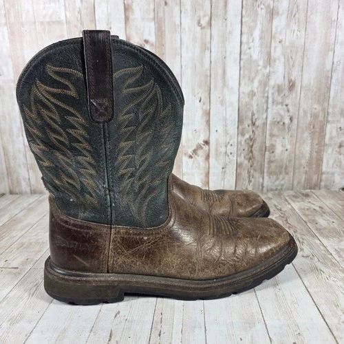 Botas occidentales Ariat Work Groundbreaker de cuero marrón verde para hombre 10034614 9,5 D