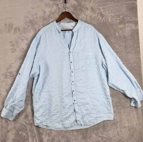 CAMISA CON BOTONES CARIBEAN Azul Claro Mezcla de Lino Para Hombre Talla 2XT