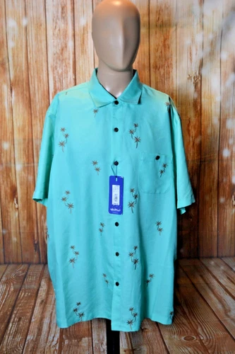 Camisa Caribeña Hombres Bordada Palmeras Verano Manga Corta Talla 2XL