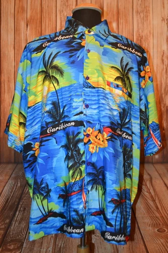 Camisa Hawaiana Manga Corta Rima Para Hombre Caribe Tropical Abotonada Talla 2XL