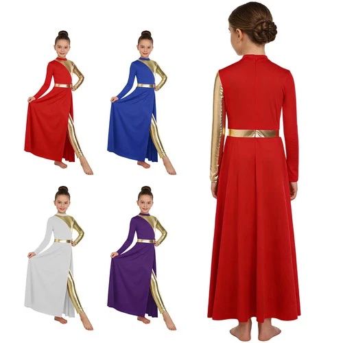 Kids Girls Dancewear Party Church Long Sleeve Dance Dress Liturgical Leotard
