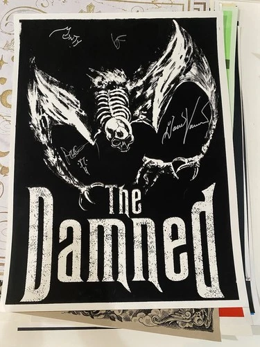 Póster Original The Damned Firmado Esqueleto Negro Obra de Arte Rock y Pop Música Punk