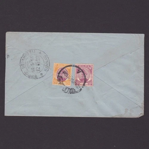 MALAYA SELANGOR 1955, cubierta de correo aéreo Kuala Lumpur a Devakottai India
