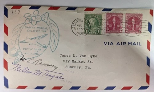 1930 Santa Paula CA correo aéreo cubierta firmada alcalde Ramsey & Teague familia Sunkist