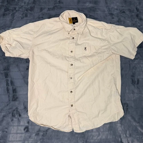 Camisa Browning Abotonada Para Hombres Grande Crema Bronceado Manga Corta Algodón Logo Bolsillo
