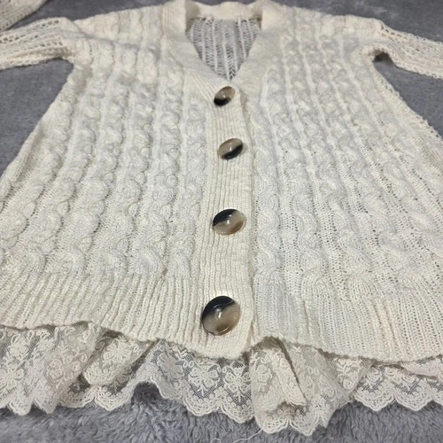 Cárdigan Arizona Jean Co Mujer Mediano Crema Excelente Borde de Encaje Boho Tejido con Cable