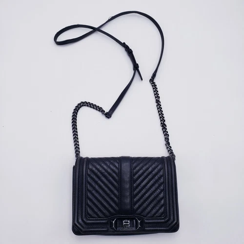 Bolso Bandolera Rebecca Minkoff Chevron Acolchado Pequeño Amor Cadena Cuero Negro
