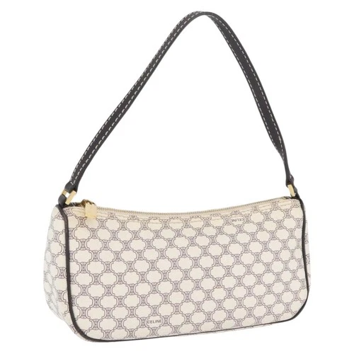 Auténtica bolsa de accesorios de lona CELINE Macadam PVC cuero blanco dorado ep13877A