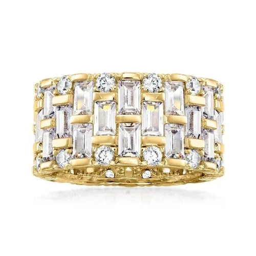Anillo banda de eternidad de diamantes simulados de corte esmeralda de 4 quilates enchapado en oro amarillo de 14 k