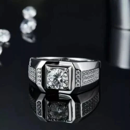Alianza de boda de diamantes simulados de corte redondo de 2 quilates para hombre enchapada en oro blanco de 14 k