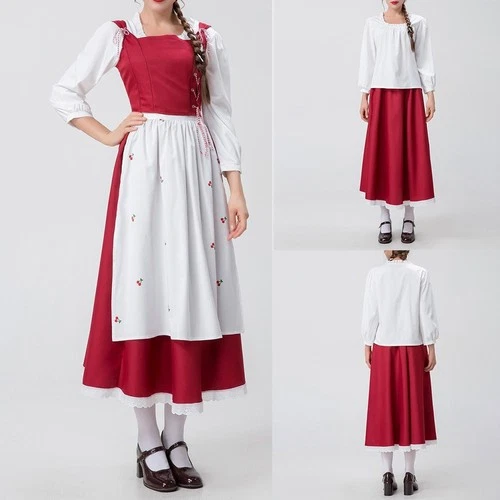 Mujer Rojo Vestido de Fiesta Caperucita Roja Disfraz con Chaleco y Delantal