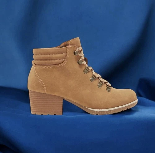 Botines Born Carson al tobillo 2/tacón de combate de 2 pulgadas, bronceado nuback con talla 7,5 nuevos en caja