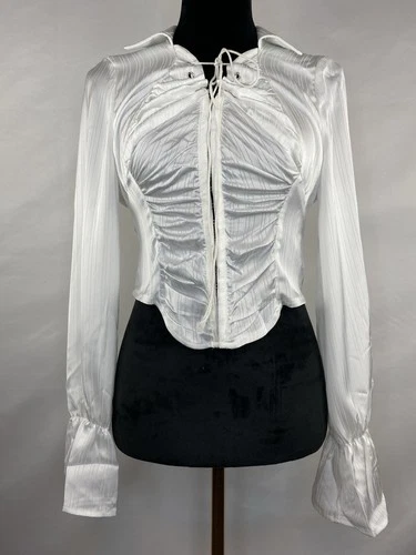 NUEVO CON ETIQUETAS Blusa Estilo Corsé Blanco Con Cordones Renacimiento Pirata Boho Festival Top S M
