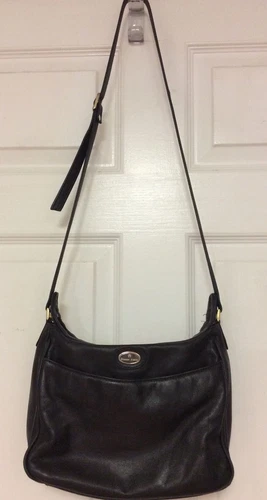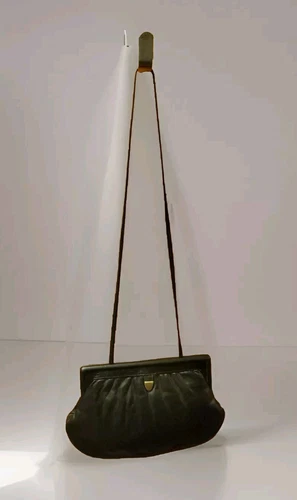 Bandolera vintage Etienne Aigner cuero negro ribete cocodrilo cierre resorte monedero