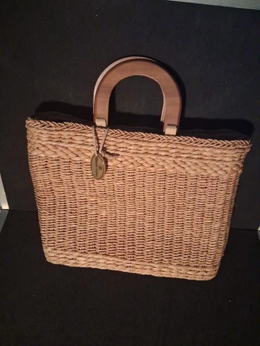 Bolso de paja vintage Etienne Aigner, playa, asas de madera de uso informal 14"x11"
