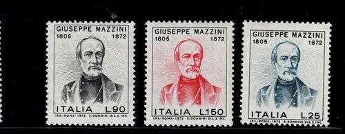 Italia 1972 MNH. Giuseppe Mazzini (1805-1872), patriota y escritor. Sc 1059-61.