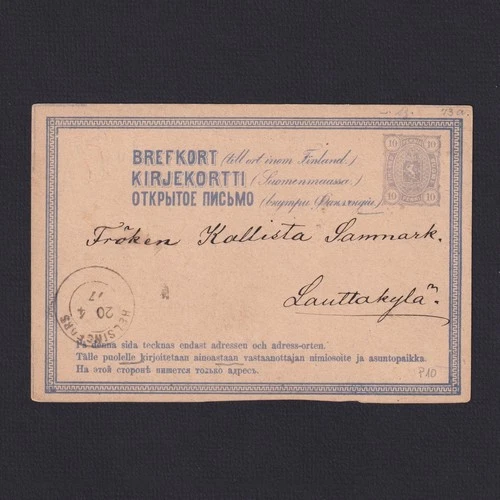 FINLANDIA 1877, Mi #P10; Tarjeta postal de Helsinki a Lauttakyla, usada