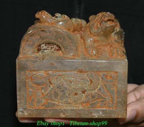 Sello sello de bestia dragón tallado cristal blanco dinastía china antigua de 4,3""