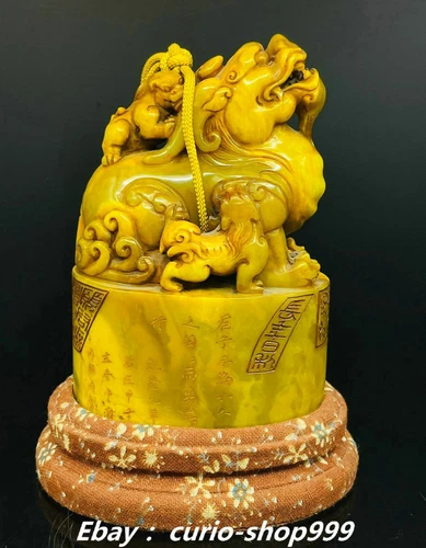 5.6" Natural Tianhuang Shoushan Piedra Poemas Palabra Dragón Bestia Sello Sello Sello Sello Sello