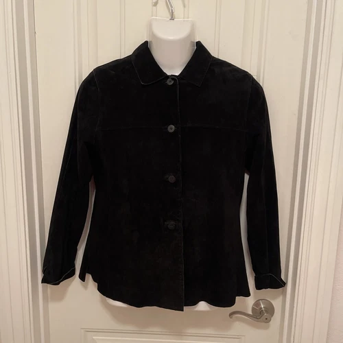 Chaqueta Blazer Valerie Stevens Gamuza Sedosa Mujer’s Talla M Negra Gamuza Cuero