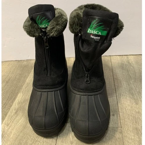Botas de Invierno Tobogán de Nieve 3M Thinsulate Impermeables Cálidas Negras Zapatos de Piel Talla 8