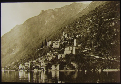 Linterna mágica de vidrio tobogán LAKESIDE TOWN C1920 ¿NORTE DE ITALIA? FOTO Nº79