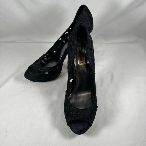Tacones de aguja Badgley Mischka negros bordados florales punta abierta talla 9,5 M