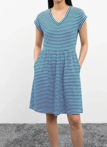 Vestido jersey para mujer Joules a rayas cuello en V azul blanco talla UK 6