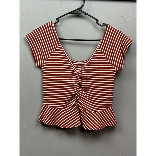 Camisa para mujer American Eagle Outfitters mediana roja blanca a rayas peplum acanalada