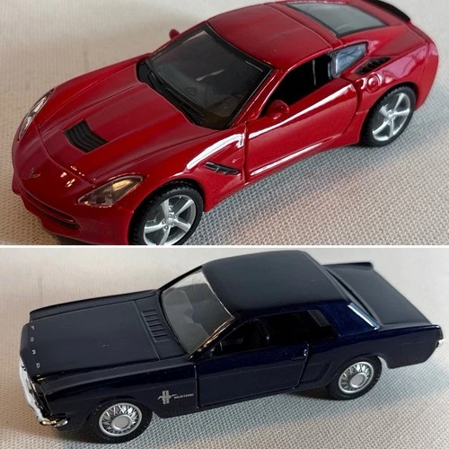2 Maisto DIe Modelos de Metal Fundido '65 Ford Mustang '14 Corvette Stingray Pull Back